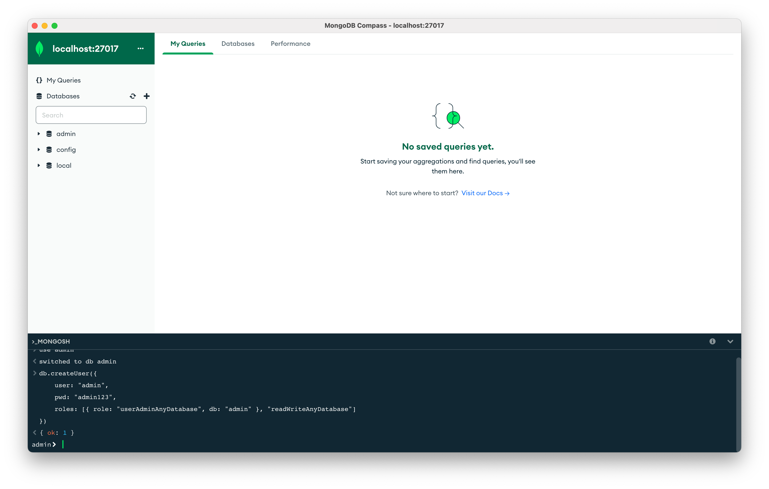 roles: [{ role: "userAdminAnyDatabase", db: "admin" }, "readWriteAnyDatabase"]