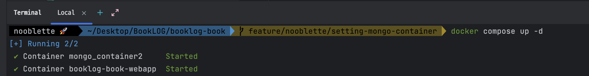 이렇게 DB 설정과 docker-compose 설정까지 마무리한 뒤에, docker compose를 통해서 두 컨테이너를 실행해보았다.